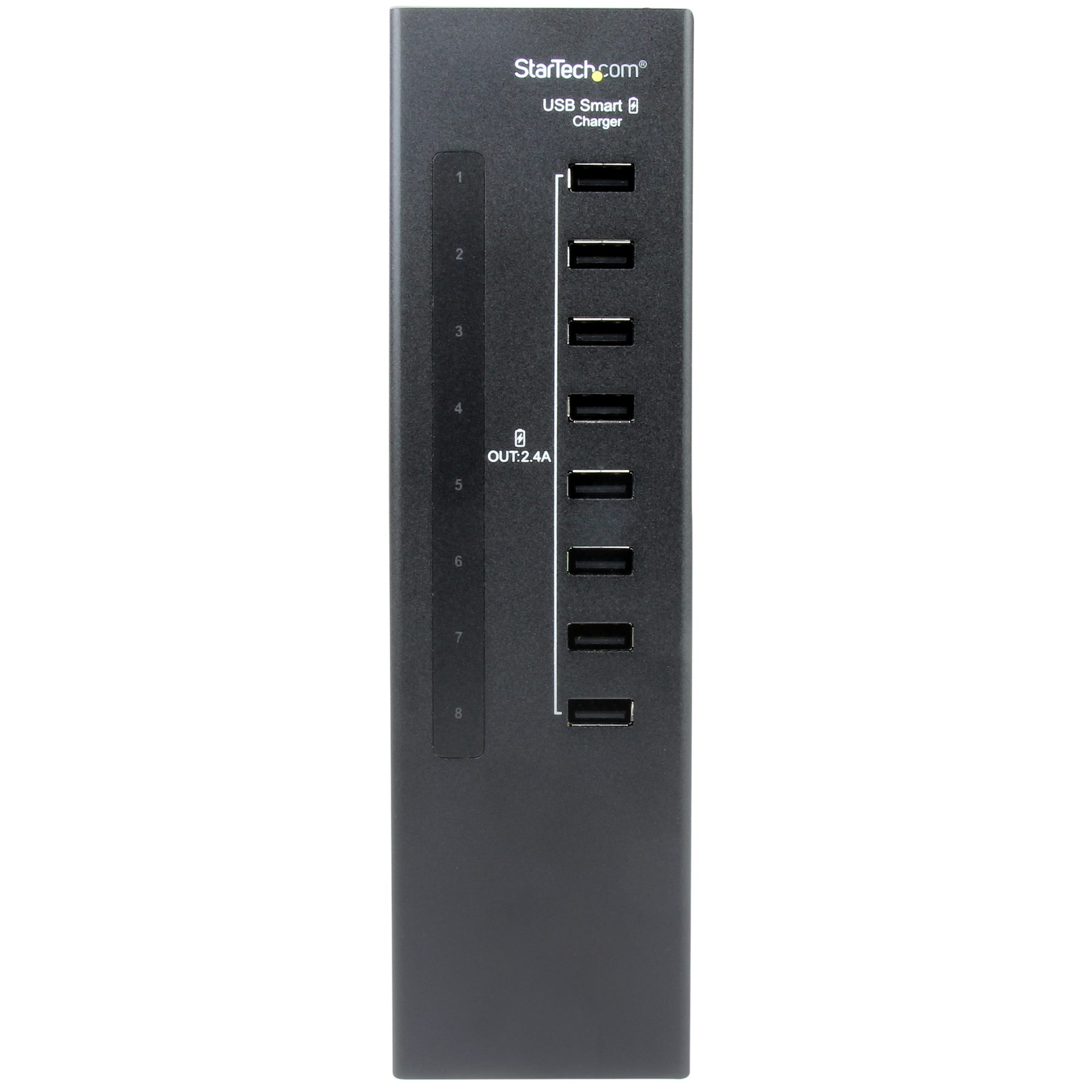 The charging station can deliver 96 watts of power in total, providing 2.4 amps of power per port. That means you can charge eight tablets at once, and every port can provide the power each device needs.