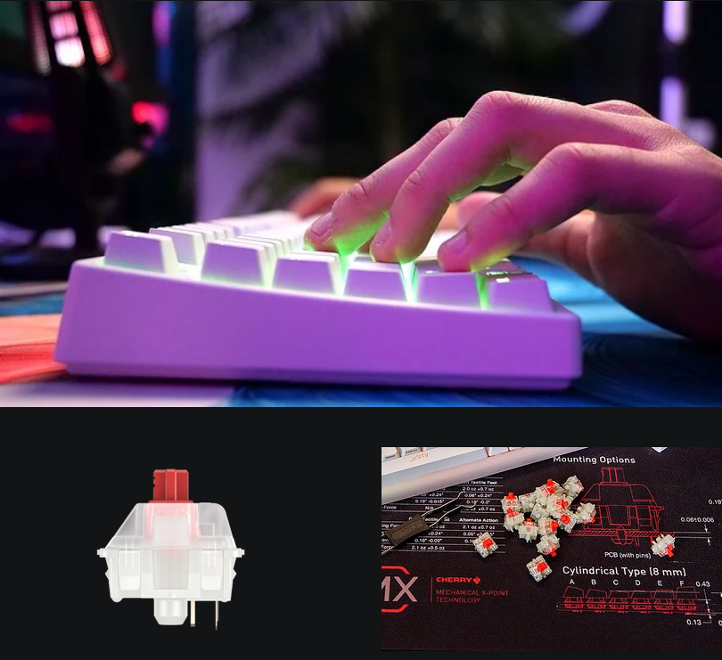 Our CHERRY MX2A switches are a revolutionary upgrade to the CHERRY MX switches used in more than 60 million keyboards worldwide. With precisely applied premium lubricant and a new innovative spring design, the MX2A not only offers smoother operation but also improved acoustics. Our CHERRY MX2A RED switches were installed in the K4V2 TKL, which ensure a smooth and direct typing feel with linear switching characteristics. The mechanical gaming keyboard in TKL format can easily handle more than 100 million keystrokes without loss of input quality.