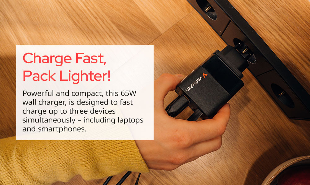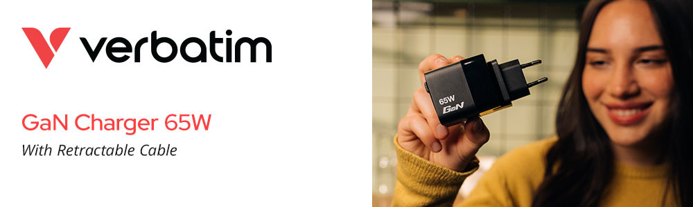 GaN Wall Charger 65W 2-Port with Retractable Cable