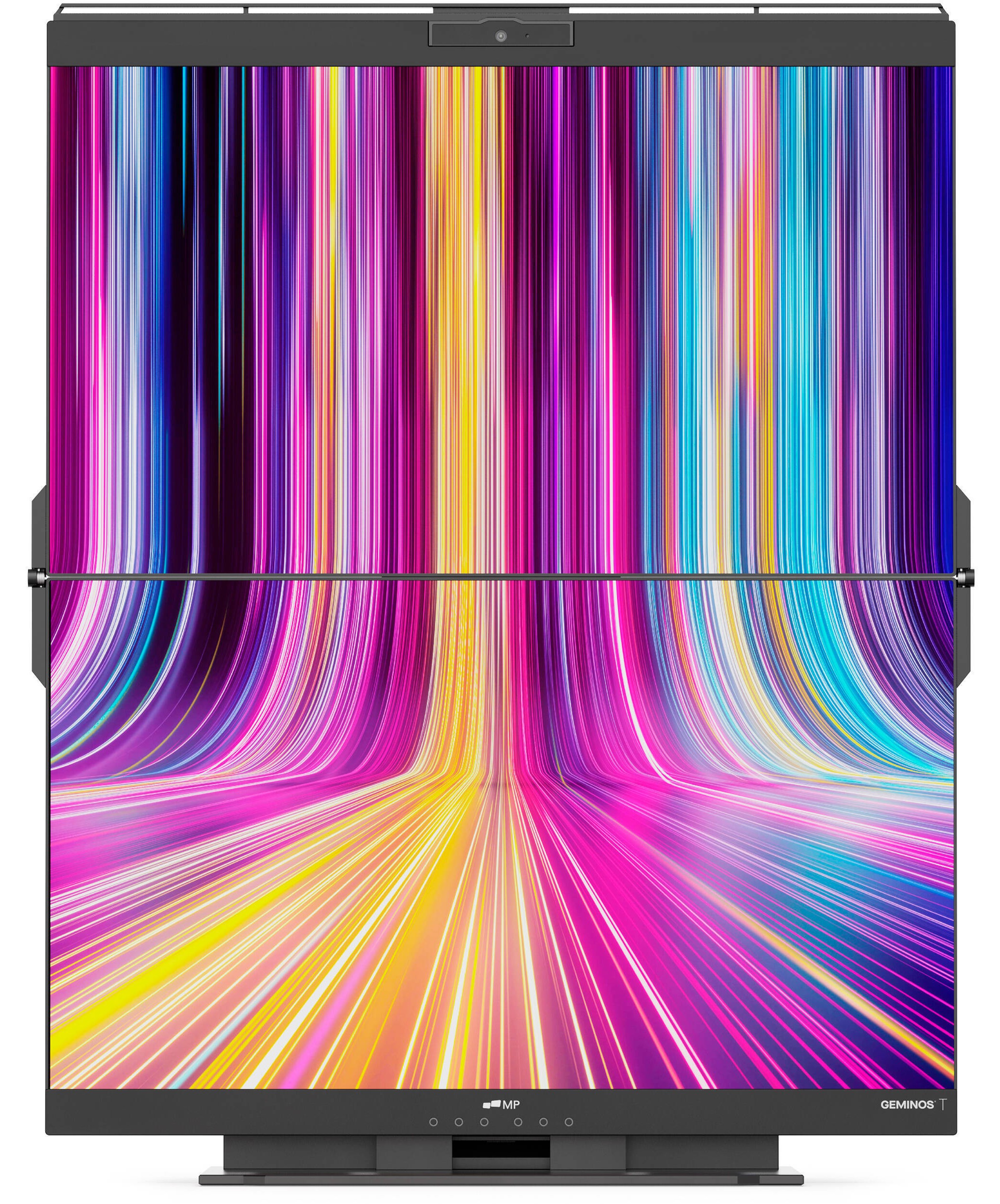 Bring your multitasking and productivity to new levels using the Geminos T 24" Dual-Stacked 1080p Monitors with Multi-Touch and Webcam from Mobile Pixels. The Geminos T stacks two 24" monitors on top of each other. The benefit of having stacked monitors as opposed to one tall display is the adjustment gained from the crease in the middle. Place a reference or notes on one screen while working on the other. With the multi-touch functions of the bottom monitor, take control of your timeline while editing video, your audio levels while producing music, and much more.
