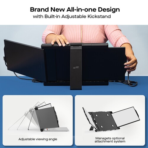 Transform your laptop into a triple-screen setup with the Trio 2.0 13.3" Portable Monitor from Mobile Pixels. The updated all-in-one design uses a built-in kickstand instead of the previous clip design to hold your screens in place. Alternatively, the four included magnets enable attachment in the same way as prior models.
