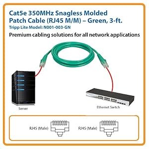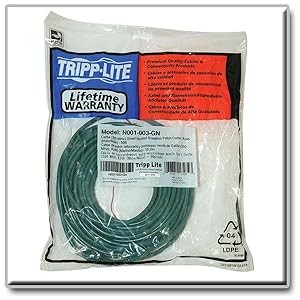 Lifetime Warranty and Environmentally Responsible DesignFor peace of mind, this three-foot Tripp Lite Cat5e 350 MHz Snagless Molded Patch Cable comes backed by a lifetime warranty. The N001-003-GN is manufactured in compliance with strict RoHS specifications, reflecting Tripp Lite’s commitment to environmental responsibility. Accept no substitutes! Your Tripp Lite cable will be shipped to you in its original Tripp Lite packaging (poly bag with Tripp Lite logo; see photo). This is your assurance that the cable you purchase will deliver the superior performance you expect. And if you don''t see this packaging, it''s not a genuine Tripp Lite cable! |
