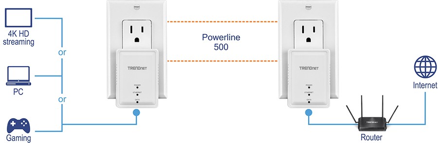 Simply plug in TRENDnet adapters! The encrypted Powerline signal auto-connects over an existing electrical system.
