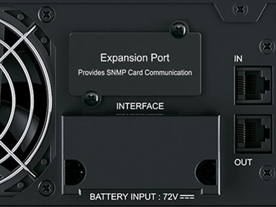 The optional BP72V60ART2U extended battery module can help extend runtimes. This UPS allows for up to ten added EBMs.