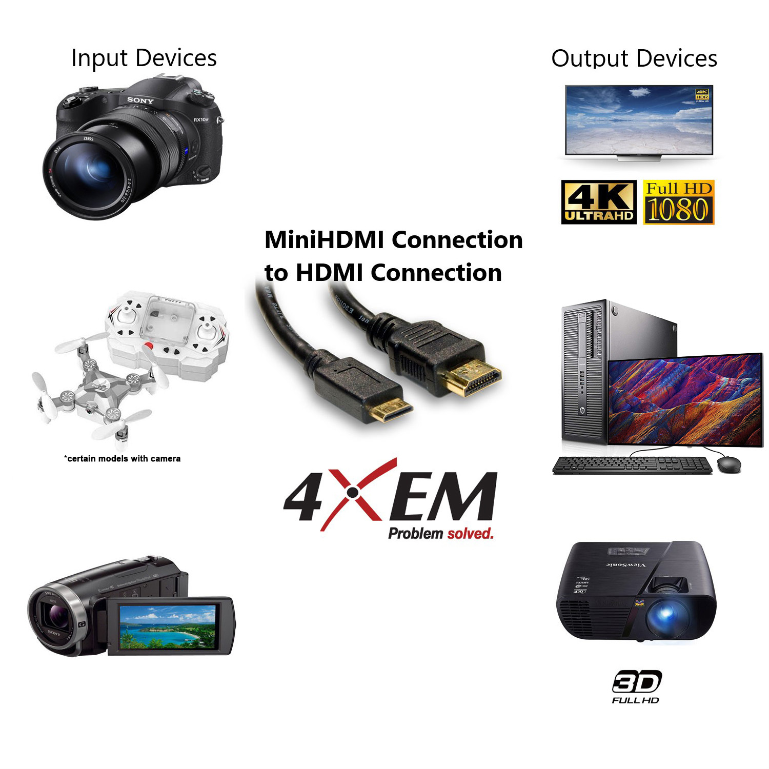 The 3-foot Mini-HDMI to HDMI Cable, is ready to enhance your audiovisual experience. Choose 4XEM for quality, reliability, and a lifetime of crystal-clear connections.