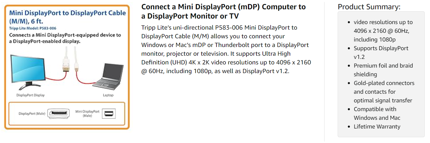 The P583-006 comes with a lifetime warranty. It’s manufactured in compliance with strict RoHS specifications, reflecting Tripp Lite’s commitment to environmental responsibility.