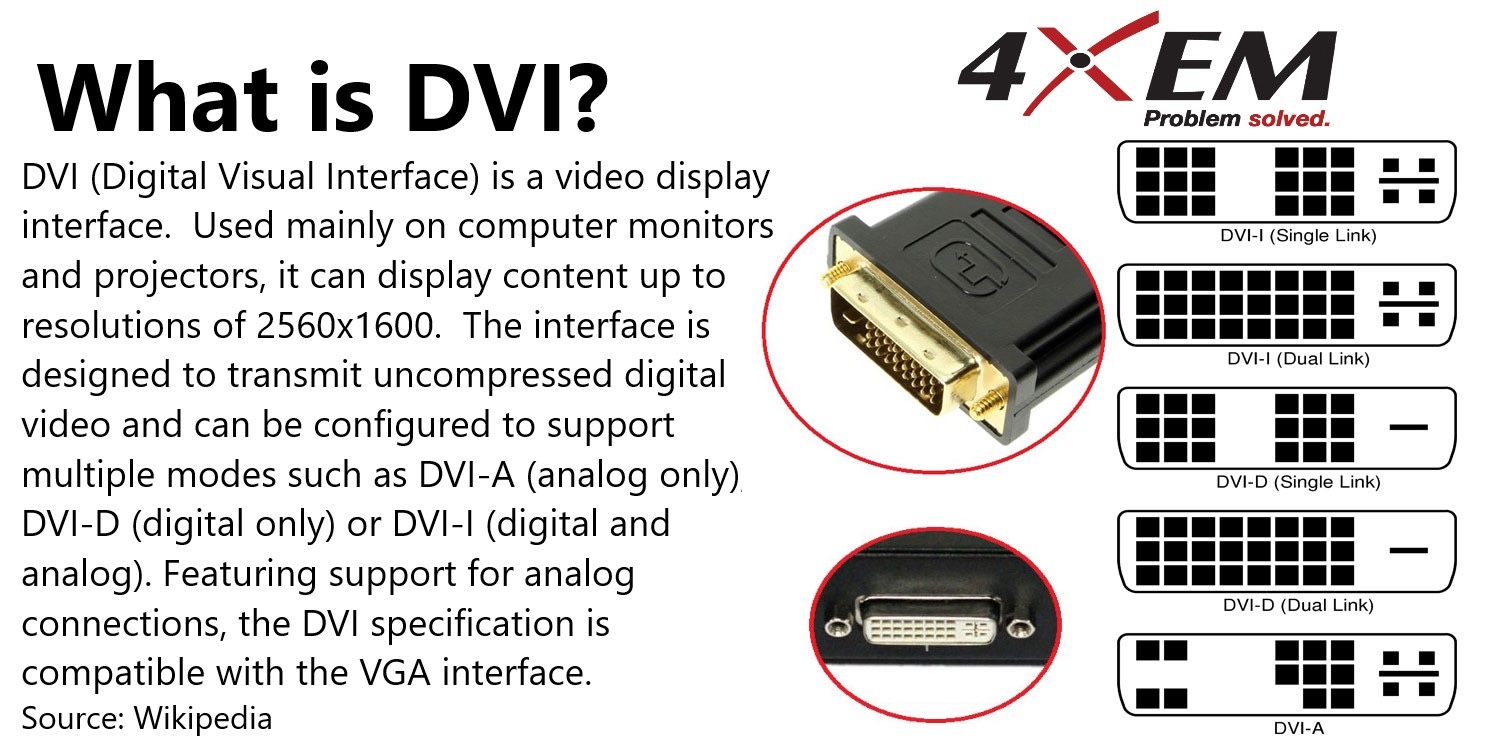 Go from a DisplayPort device to a DVI-I Dual Link monitor or projector with 4XEM’s 9 inch DisplayPort Male to DVI-I Female Adapter Cable (4XDPDVI).