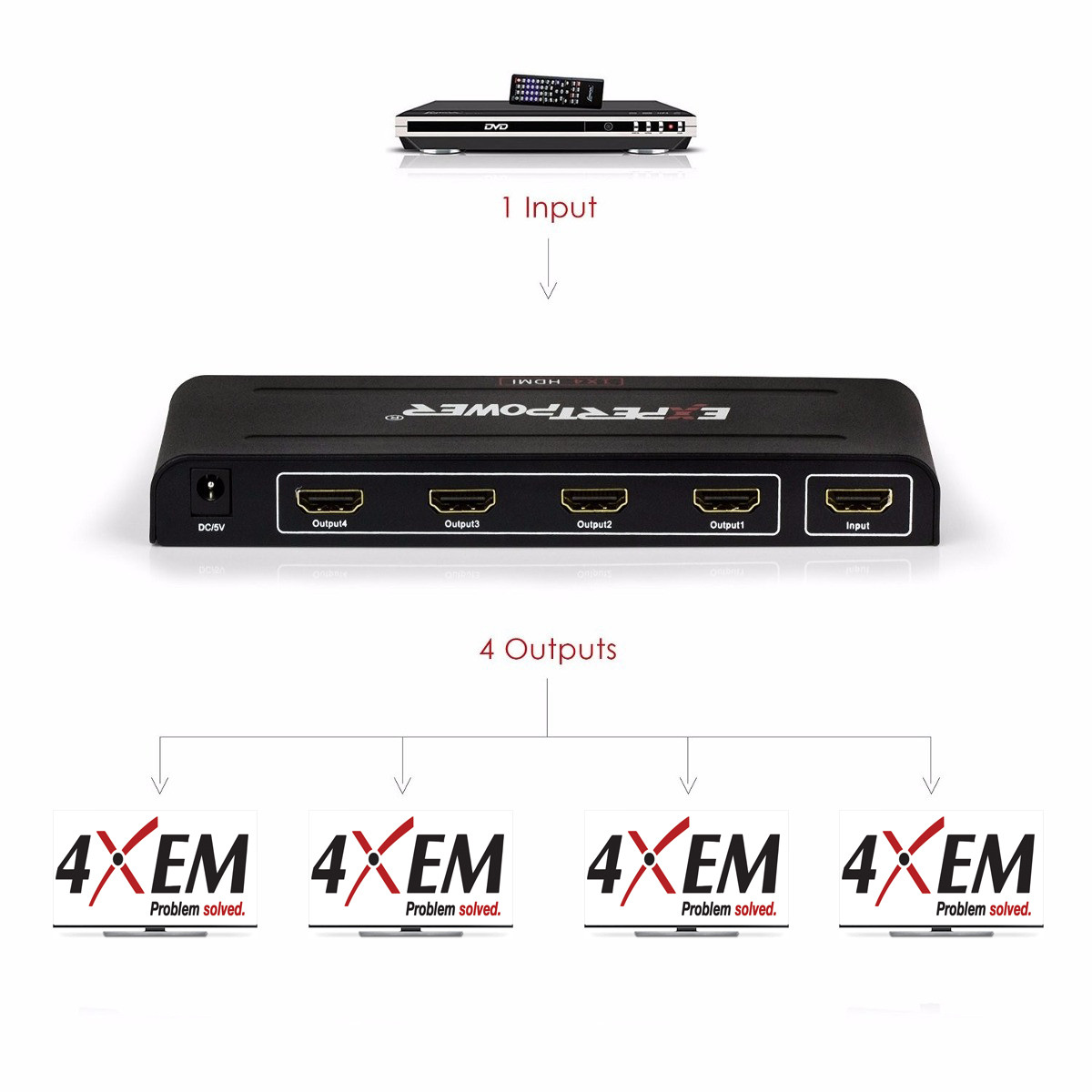 definition images and pristine audio with 4XEM’s high speed, 4 port HDMI splitter and