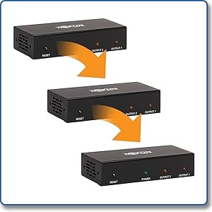 The B118-002-HDR enables you to cascade up to three levels of splitters, expanding the total number of connected displays to eight.