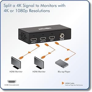 Take advantage of true 4K resolution on a newer 4K display, while still using another existing or less-costly screen displaying lower resolutions within the same installation. Unlike most other HDMI splitters that default each display to the lowest common resolution of all connected displays, the B118-002-HDR supports multi-resolution output, so that 4K content is displayed at the maximum output supported by each television, monitor or projector.
