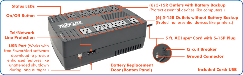 Tripp Lite's low-profile line-interactive UPS system fits small spaces and tight budgets. This versatile UPS provides advanced protection for a variety of electronics, including computers, smart devices and audio/video components.