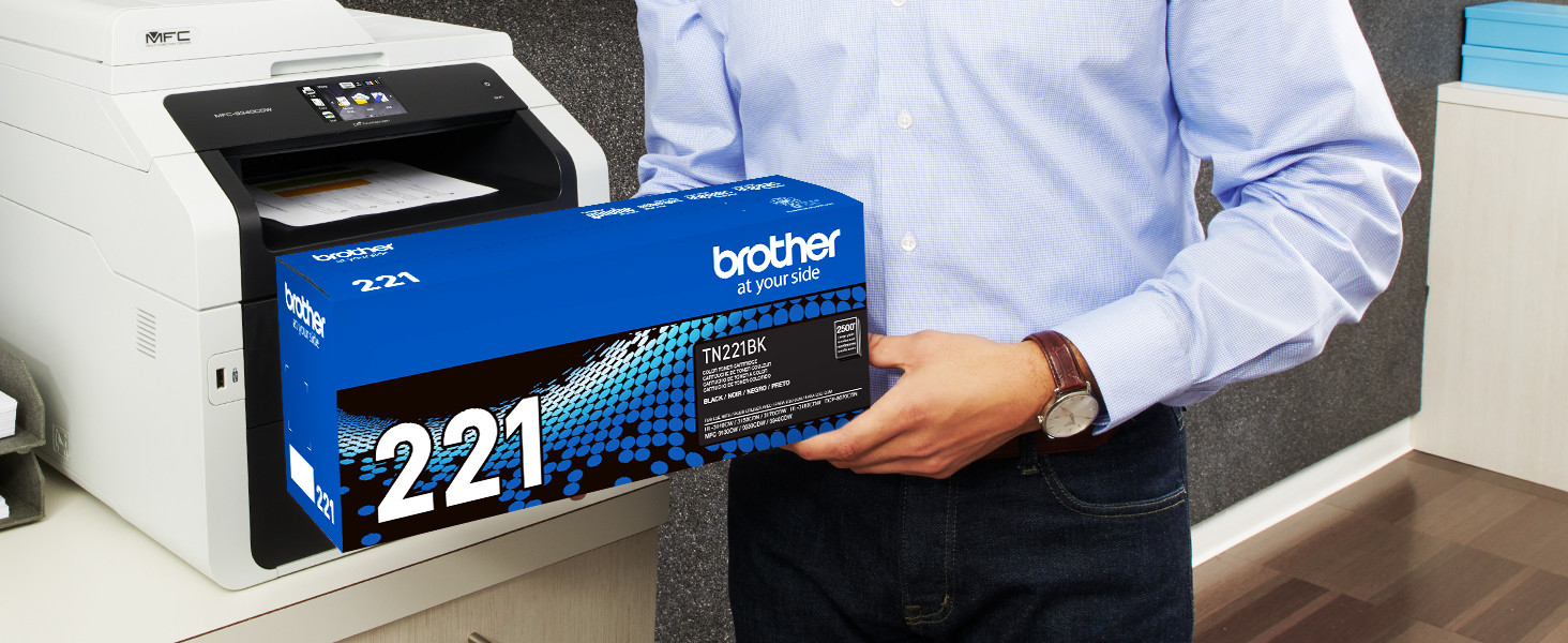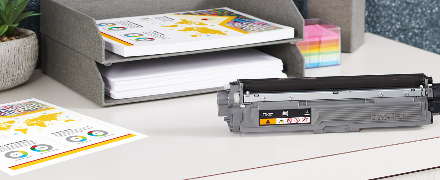 The TN221BK black toner cartridge provides professional laser print quality you can consistently rely on for up to 2,500 pages(1).