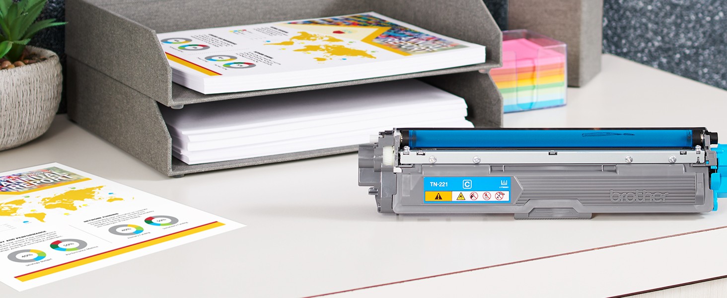 The TN221C cyan toner cartridge provides professional laser print quality you can consistently rely on for up to 1,400 pages(1).
