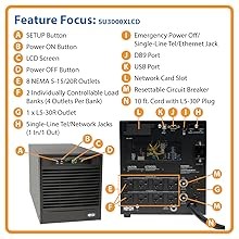 The convenient LCD status screen provides easy access to detailed UPS settings and information. The illuminated LCD displays a variety of helpful data, including voltage, frequency, load percentage, load wattage, power status, battery status, operating mode, battery capacity and estimated backup runtime remaining. The intutive controls also allow you to change the UPS system's operating mode and other settings. The LCD provides more information and greater control than comparable models, allowing you to diagnose and respond to power problems before they cause downtime.