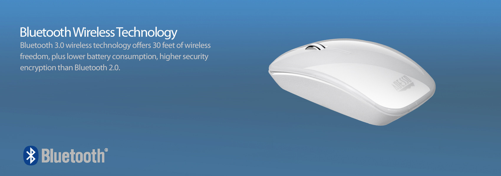 Features: Battery Saving Bluetooth Wireless Technology Bluetooth 3.0 wireless technology offers 30 feet of wireless freedom, plus lower battery consumption, higher security encryption than Bluetooth 2.0. With the Auto-Sleep feature you can automatically maximize your battery life when mouse is not in use.