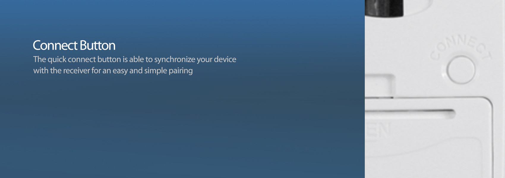 Connect Button The quick connect button is able to synchronize your device with the receiver for an easy and simple pairing.
