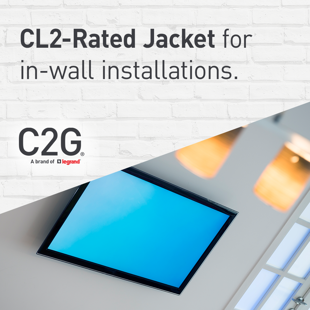 In-wall rated cable for connecting a multimedia device to a display and supporting the latest HDMI features including Ultra HD, 4K at 60Hz (2160p), up to 32 audio channels and wide angle theatrical 21:9 video aspect ratio