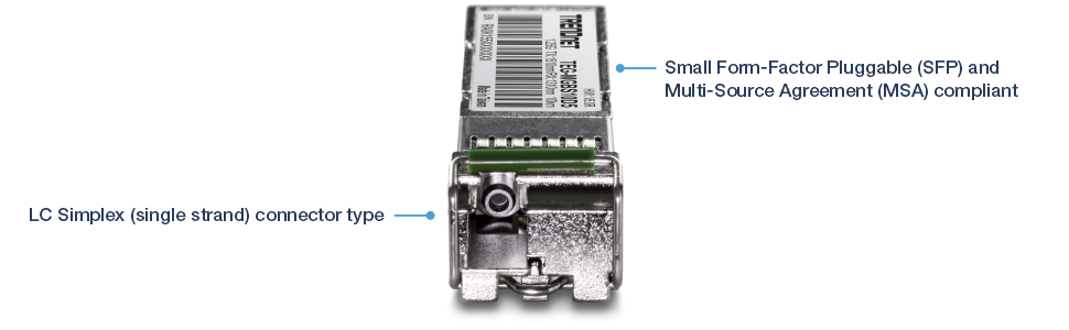 This single mode fiber SFP transceiver supports LC-type simplex connector