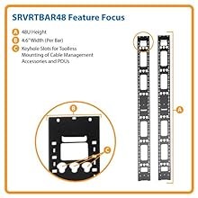 SRVRTBAR48 cable management bars are compatible with 48U enclosure cabinets. For fast installations, keyhole slots allow for easy device installation with devices equipped with toolless mounting buttons. Tripp Lite offers an extensive selection of toolless-mountable Basic, Metered, Monitored and Switched 0U PDUs and SR-series enclosure cabinet accessories.