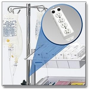 Built-in mounting flanges and integrated keyhole slots allow you to install the durable all-metal housing on any mobile cart or IV pole for distributing power to movable rack-, table- and pedestal-mounted equipment.