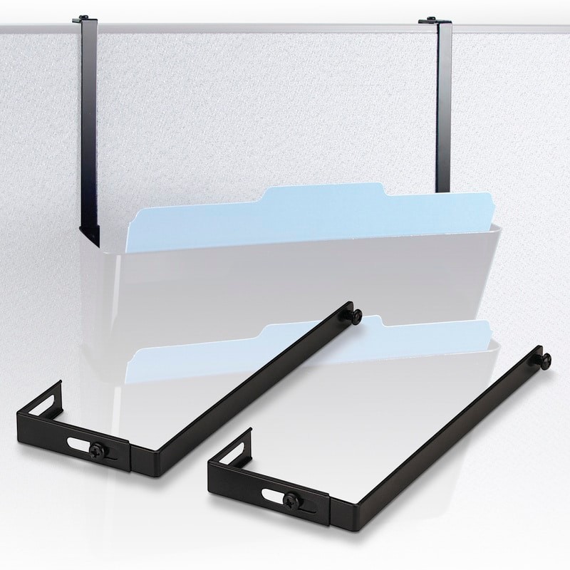 Hang from partition tops, most wall files and cubicle accessories.