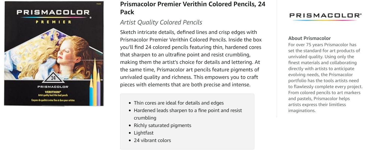 One each of: Lemon Yellow – VT735-1/2, Canary Yellow – VT735, Orange – VT737, Poppy Red – VT744, Crimson Red – VT745, Magenta – VT759, Process Red – VT743-1/2, Light Peach – VT757, Dahlia, Purple – VT752, Parma Violet – VT742-1/2, Violet – VT742, Ultramarine – VT740, Peacock Blue – VT740-1/2, Indigo Blue – VT741, Peacock Green – VT739, Terra Cotta – VT745-1/2, Tuscan Red – VT746-1/2, Dark Brown – VT746, Warm Grey – VT734-1/2, White – VT734 and Black – VT747 coloring pencils.