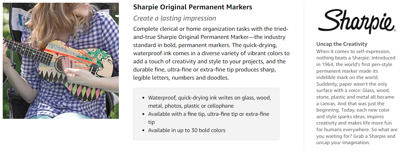 The world is your canvasWrite or draw on whatever surface you choose. Sharpie markers are permanent on most hard-to-mark surfaces, so you’re not restricted to the blank page. Get creative. |