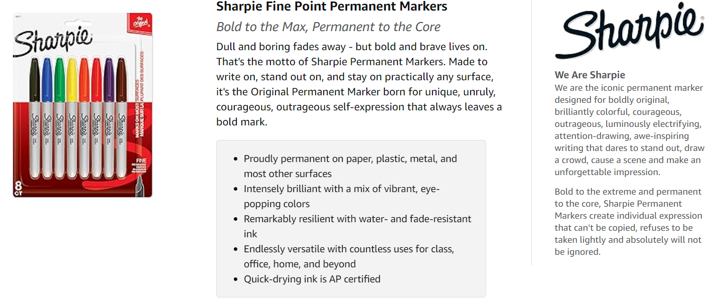 Proudly Permanent InkMade to mark and stand out on almost every surface, iconic Sharpie permanent ink is quick drying and water- and fade-resistant. |