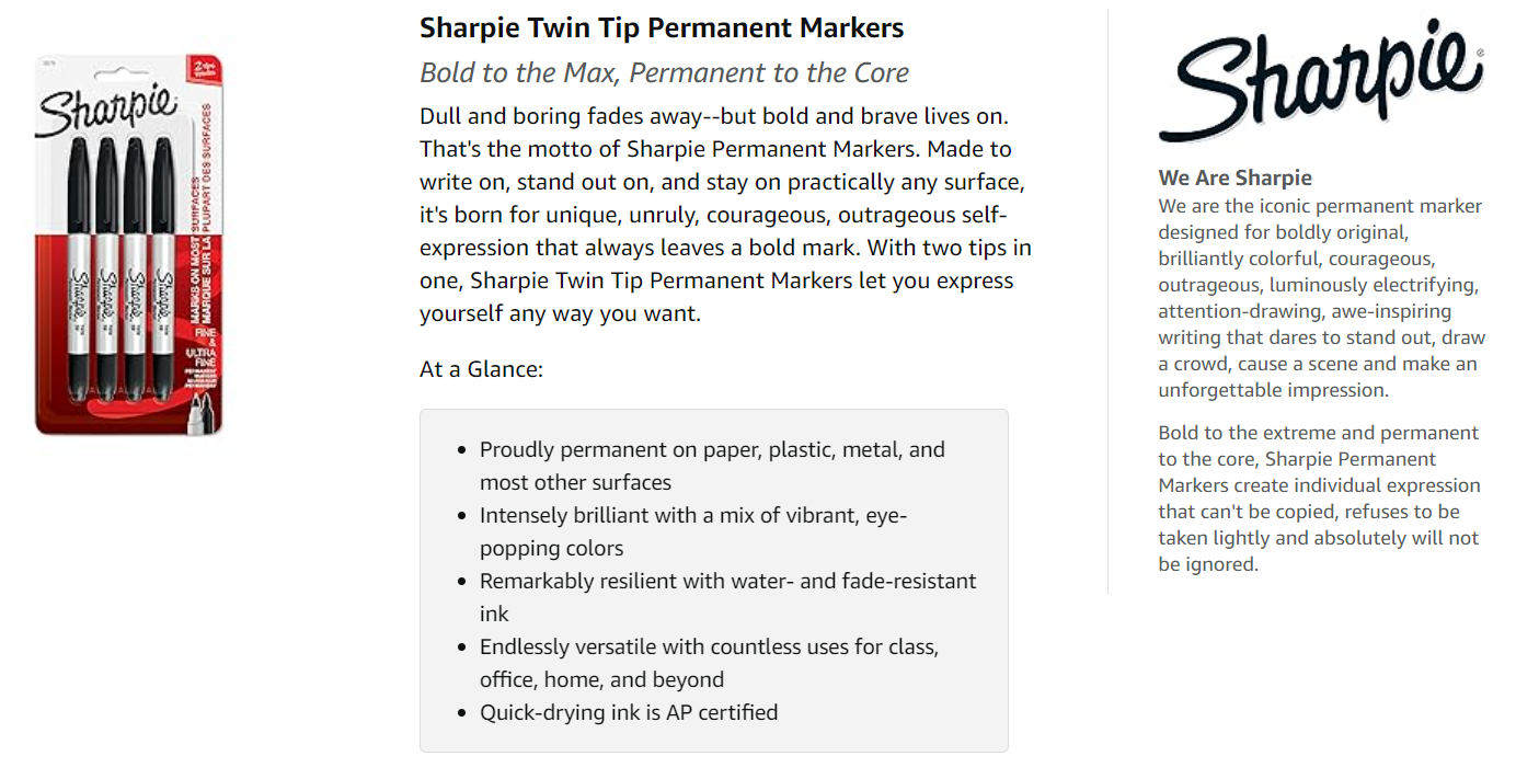 Made to mark and stand out on almost every surface, iconic Sharpie permanent ink is quick drying and water- and fade-resistant.