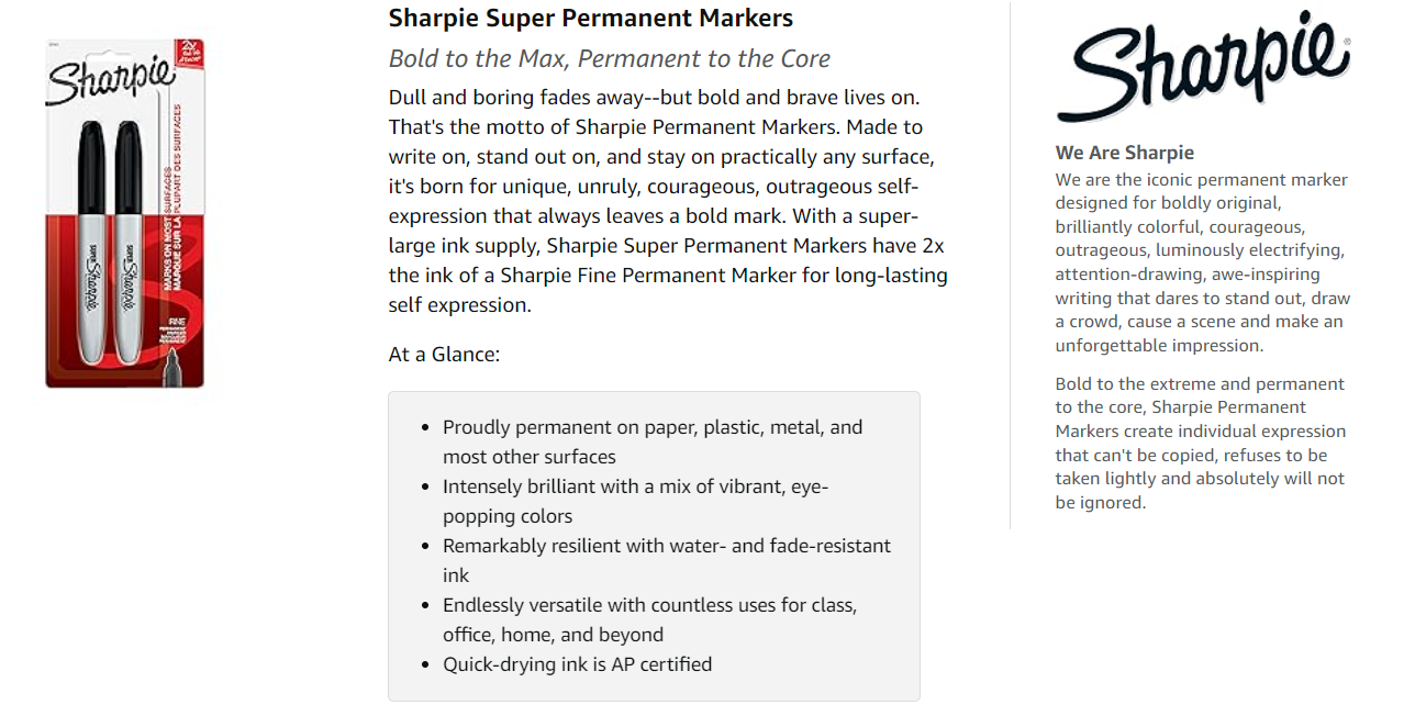 Made to mark and stand out on almost every surface, iconic Sharpie permanent ink is quick drying and water- and fade-resistant.