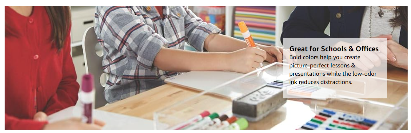 Getting an entire classroom to pay attention is no easy task! Luckily bold and reliable Expo dry erase markers are here to lend you a helping hand. Whether you’re going over a lesson or facilitating group work, these whiteboard markers ensure everything is clear and easy to read.
