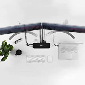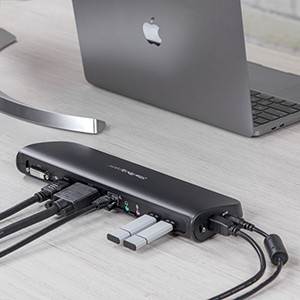 Offering flexible dual video combinations right out-of-the-box, this universal laptop docking station features HDMI, DVI and VGA external monitor outputs.