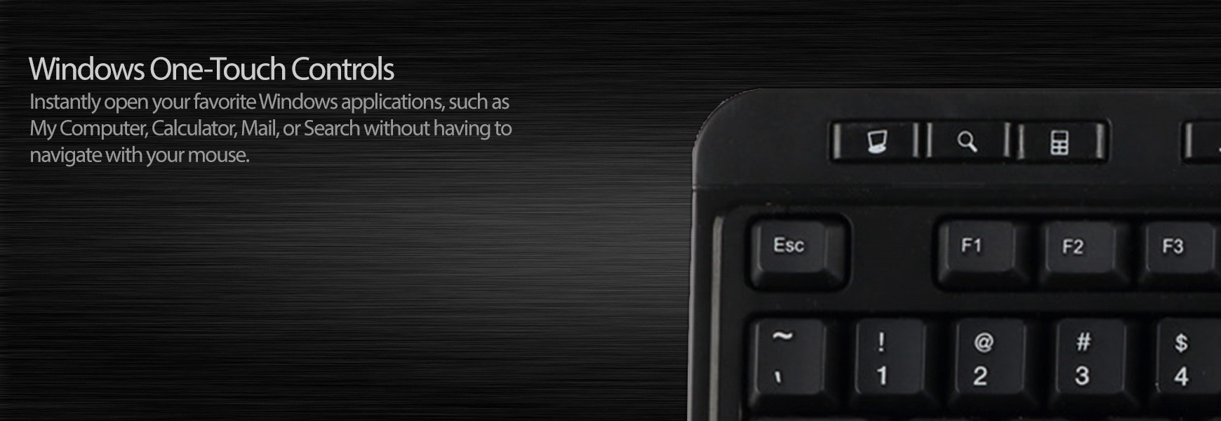 Instantly open your favorite Windows applications, such as My Computer, Calculator, Mail, or Search without having to navigate with your mouse.