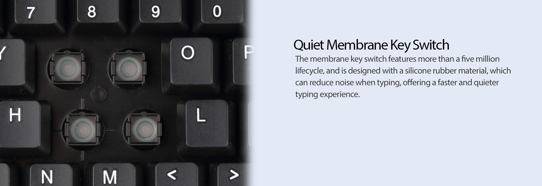 Membrane key switches provide a better tactile response and a quieter typing experience. Plus they last up to five million keystrokes.