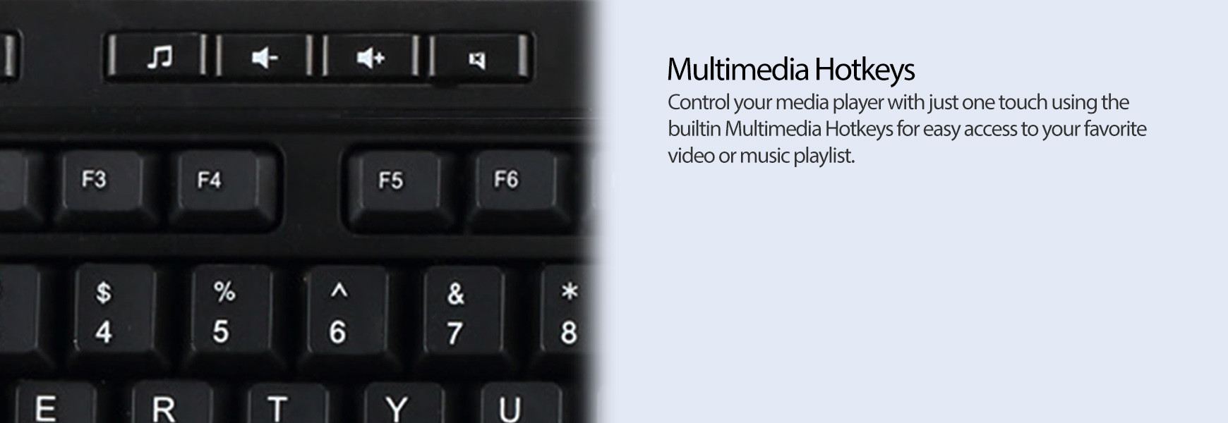 Control your media player with just one touch using the builtin Multimedia Hotkeys for easy access to your favorite video or music playlist.