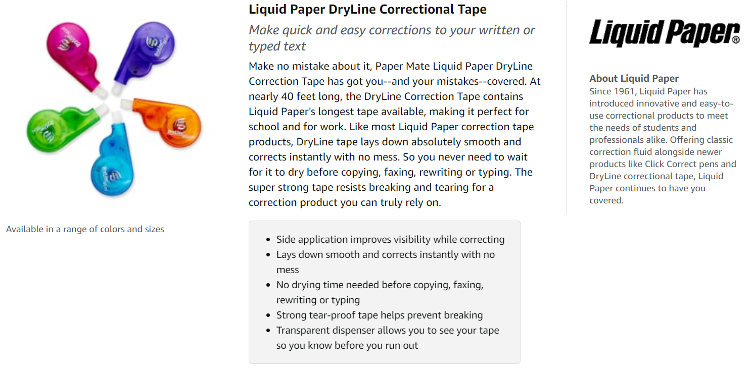 Place your paper on a firm, flat surface. Position the tip of the applicator flat on the paper and slowly roll over the error while maintaining firm, even pressure. When area is completely covered, stop and lift dispenser.