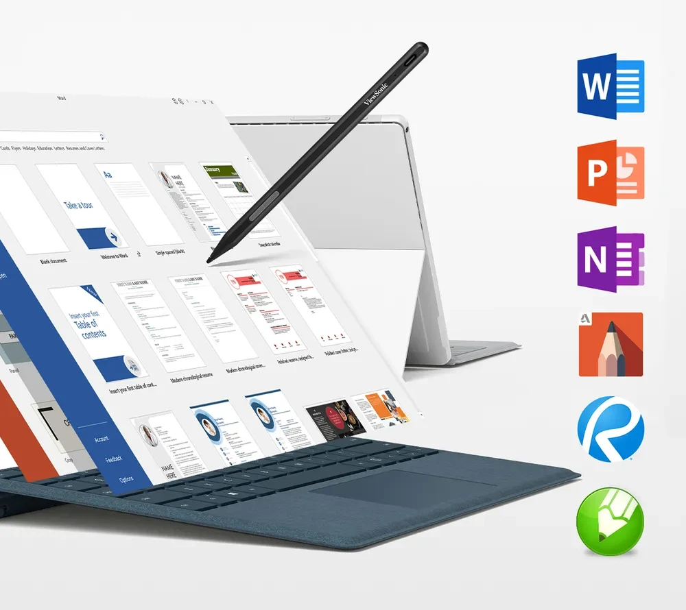 The pen can be used with commonly used educational and business applications such as OneNote, Microsoft Office, Adobe Suite, Drawboard, and more.