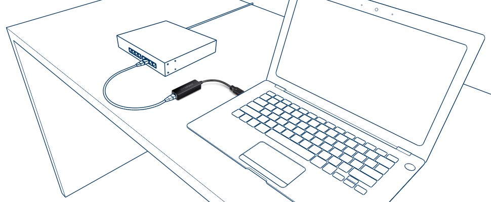 Use the USB 3.0 Ethernet adapter to easily connect to a gigabit network from a USB Type-A 3.0 enabled notebook.