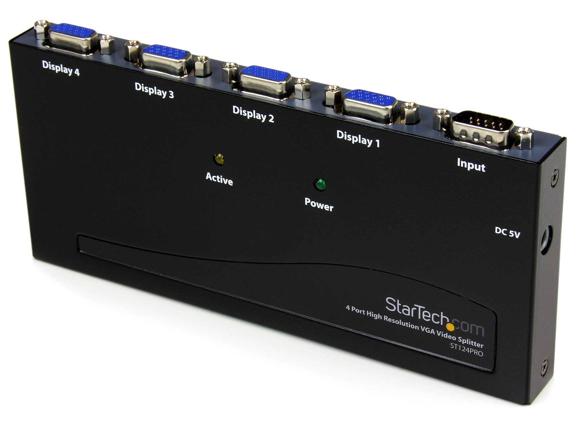 The ST124PRO 4 Port High Resolution VGA Video Splitter - 350 MHz splits a VGA video source signal to 4 monitors or projectors simultaneously - a professional grade solution that is perfect for presentations, classrooms, tradeshows, or in-store displays, where the highest quality video on several monitors is needed.