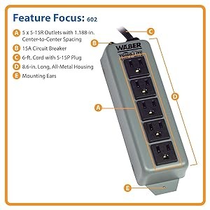 The 602’s switchless design eliminates accidental shut-off. A built-in, 15A resettable circuit breaker prevents dangerous circuit overloads that could damage equipment by immediately shutting off AC input when it detects that the equipment load is drawing too much power. For optimum safety, the 602 is tested to UL standard 1363.