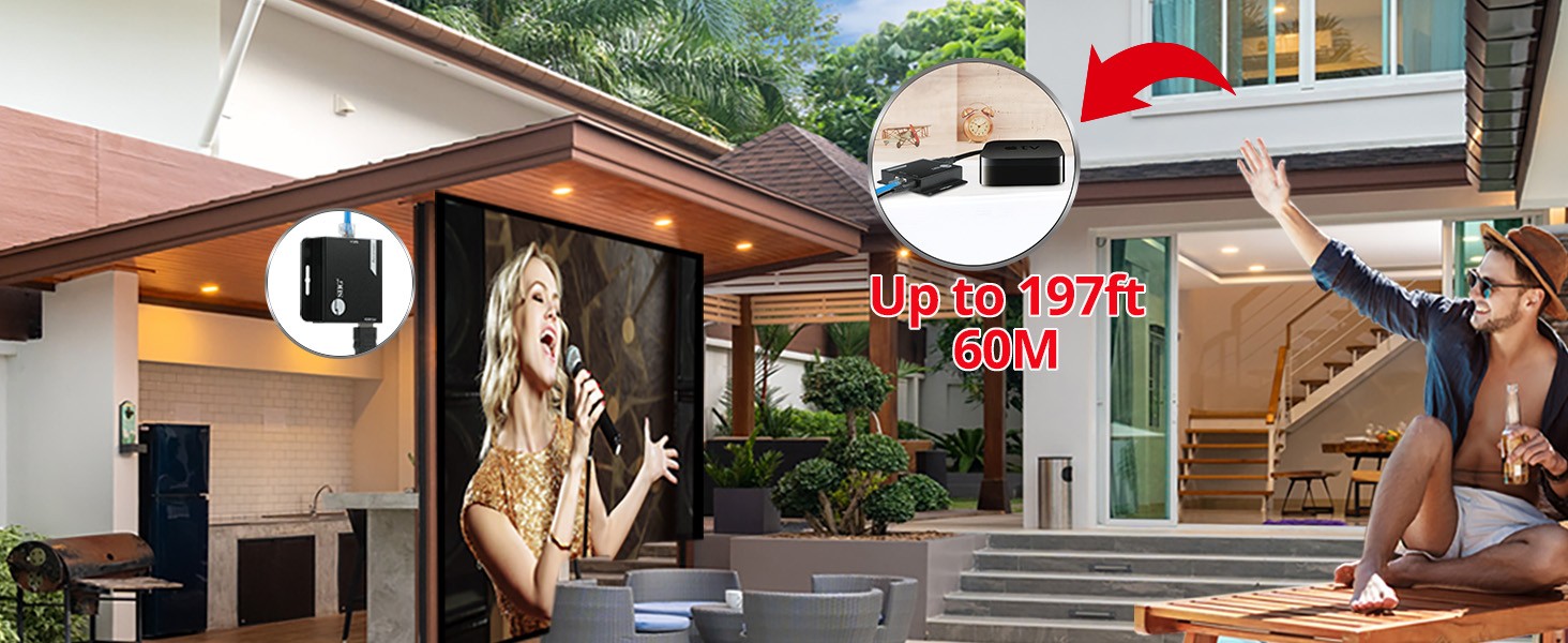 Easily extend HDMI audio/video signals over a single Cat6 network cable, while maintaining signal strength and superior quality and extends transmission distance up to 197ft (60m)