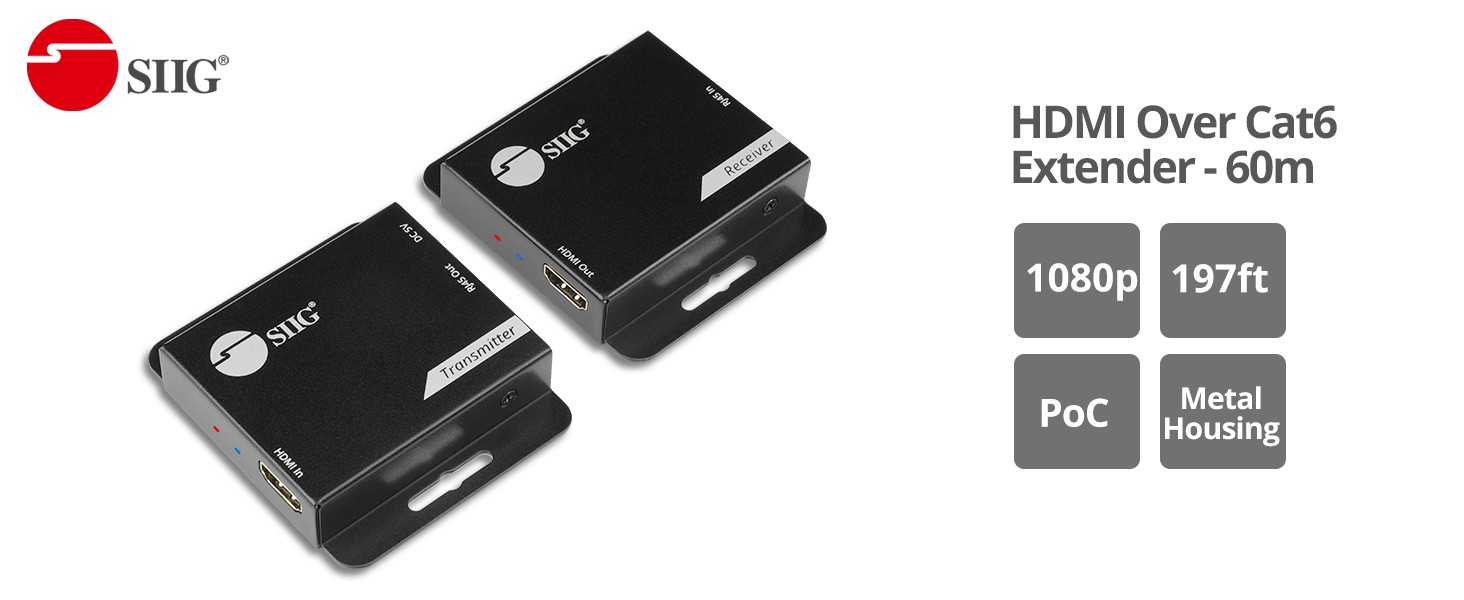 SIIG's HDMI Over Cat6 Extender - 60m is designed to provide seamless transmission of HDMI signals over long distances using standard Cat6 network cables. Ideal for use in a variety of settings, such as corporate environments, educational institutions, and home entertainment setups