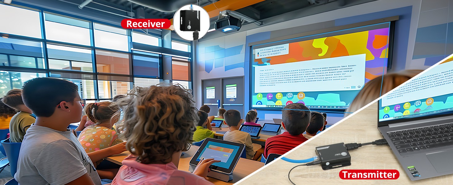 In a classroom or training room, teachers can place the video source (such as a computer or laptop) on the teaching desk and transmit the signal through this extender to a distant monitor or whiteboard so that all students can clearly see the presentation content