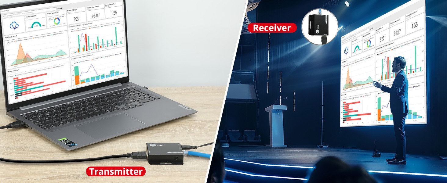 In large conference rooms or showrooms, you can place a video source (such as a computer or media player) on a conference table or console and extend the signal to a display far away from the source device with this HDMI extender on a screen or projector. This not only keeps the presentation area tidy, but also ensures that the video signal is clear and stable