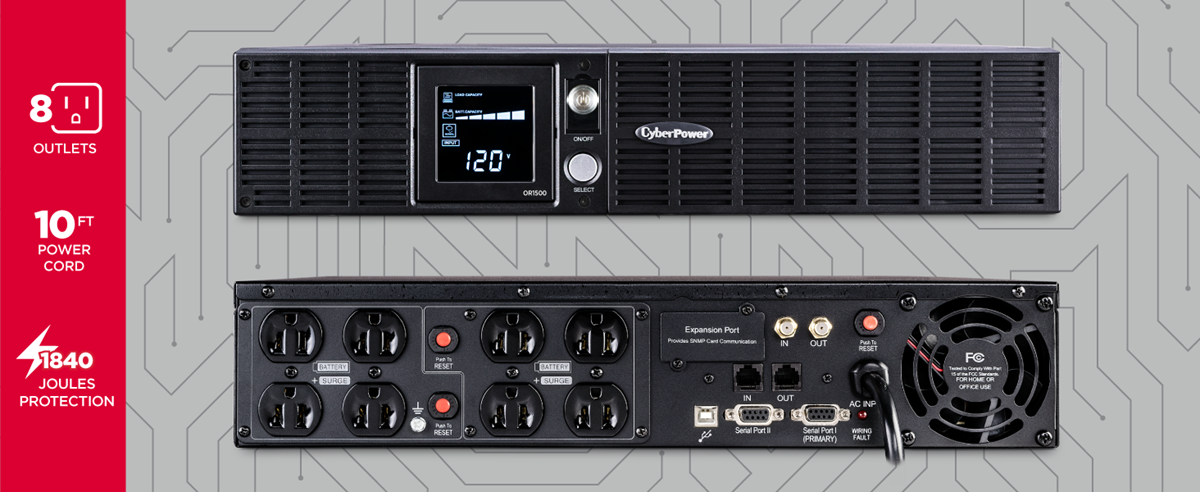 This unit is equipped with eight battery backup and surge protected outlets to keep your equipment protected from power surges and spikes.