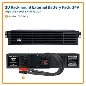 Tripp Lite’s BP24V36-2US Rackmount External Battery Pack extends battery runtime when used with compatible Tripp Lite rackmount UPS systems. The BP24V36-2US includes heavy-gauge cabling with a high-current DC connector for safe, simple installation. An included daisy-chain connector allows the addition of multiple compatible 24V external battery packs to the host UPS. The BP24V36-2US comes with mounting accessories that support 2U rackmount installation in 4-post racks. Optional accessories are available for 2-post front-rail mounting, 2-post center-mounting and wall mounting.