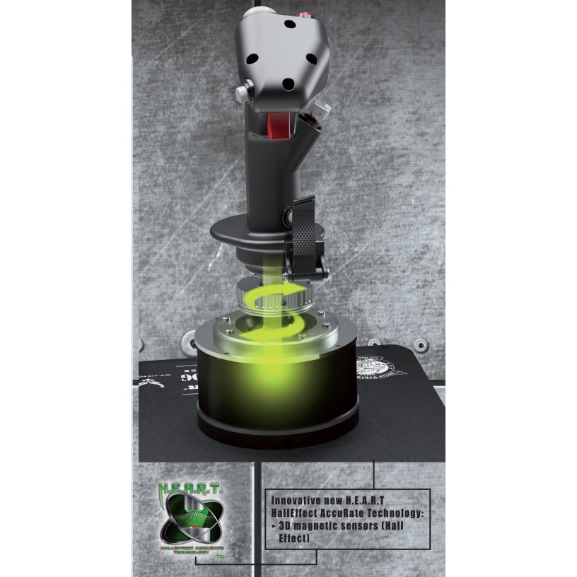 It provides extreme precision, thanks to the H.E.A.R.T HallEffect AccuRate Technology magnetic sensor system it employs: 16-bit precision (65536 x 65536 values), with no gimbals (cardan joints). What's more, pressing on the joystick's buttons and triggers requires pressure identical to that required in an actual airplane – a true first in the world of joysticks. Particular attention has been paid to freedom of use for simmers, with the joystick's handle being detachable, and its base being detachable as well (allowing you to install the joystick in a cockpit).