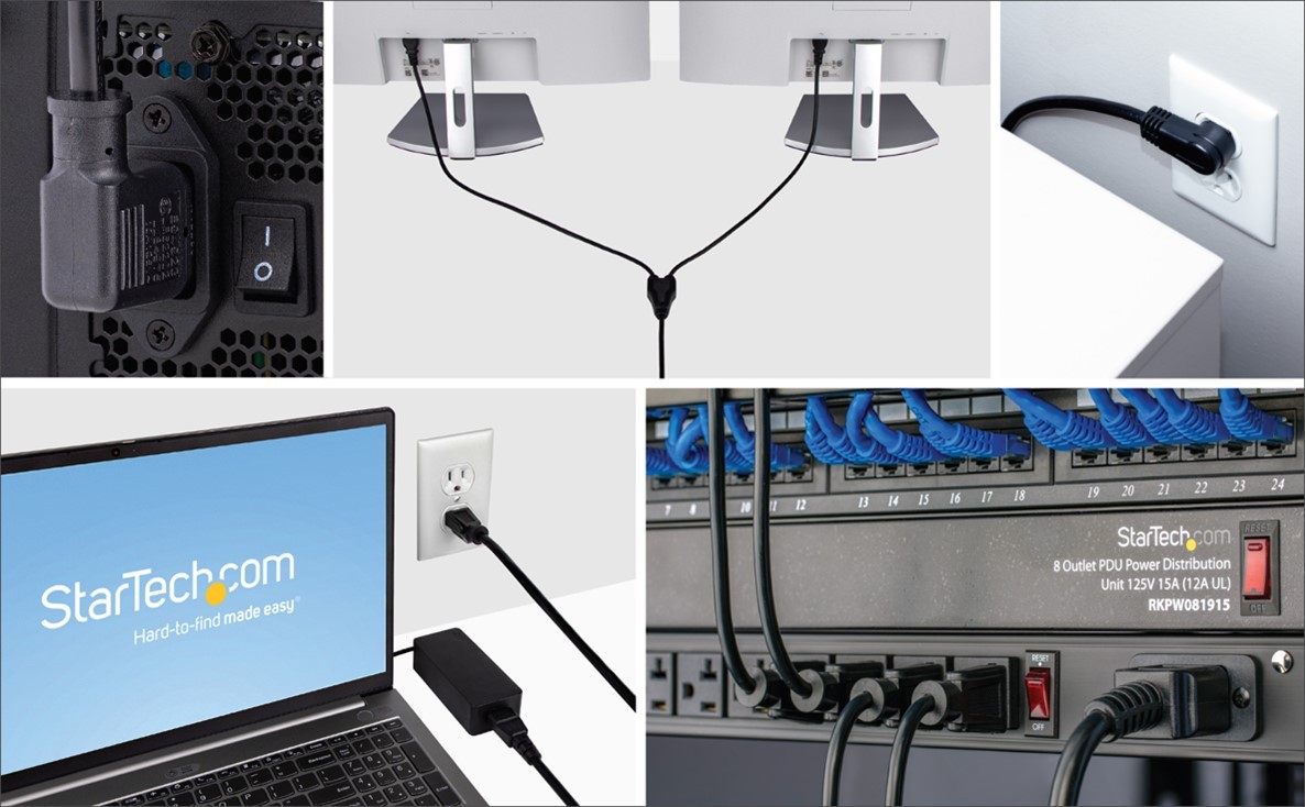 StarTech.com power cables are designed for IT Pro applications and requirements, including standard and heavy-duty power cords, extension cords, medical-grade cords, splitter and passthrough cables. Performance, safety and reliability are ensured by our in-house and third-party testing labs.