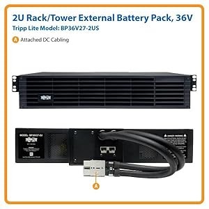 Tripp Lite’s BP36V27-2US Rack/Tower External Battery Pack extends battery runtime when used with compatible Tripp Lite rack/tower UPS systems. The BP36V27-2US includes heavy-gauge cabling with a high-current DC connector for safe, simple installation. An included daisy-chain connector allows the addition of multiple compatible 36V external battery packs to the host UPS. The BP36V27-2US comes with mounting accessories that support 2U rackmount installation in 4-post racks. Optional accessories are available for 2-post front-rail mounting, 2-post center-mounting, wall mounting and upright tower installation.