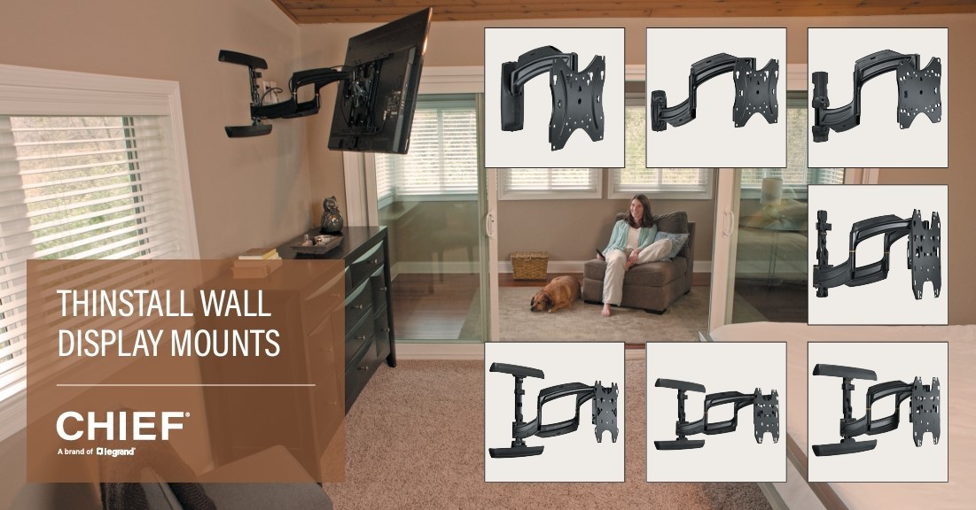 Chief’s Thinstall Series Swing Arm Mounts are ultra low-profile full-motion wall mounts for flat panel TVs and displays. These sleek, ruggedly-constructed solutions have low